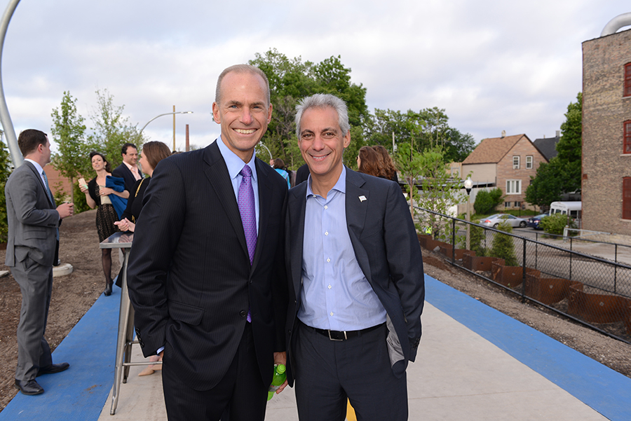 Though the 606 project was a partnership between City of Chicago and the Chicago Park District and the Trust for Public Land, it was also made possible by the generosity of big time donors. Above The Rails marked the completion of the first phase and opening of The 606, a public-private partnership and signature project of the City of Chicago, the Chicago Park District and The Trust for Public Land. During the event, Beth White noted that the Searle Fund at The Chicago Community Trust, already a big donor to The 606 project, would donate another $1 mil if they raised $3 million by the end of the year.
