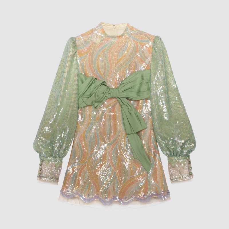 Gucci bead and sequin embroidered tulle mini dress with contrast silk bow | BUY HERE