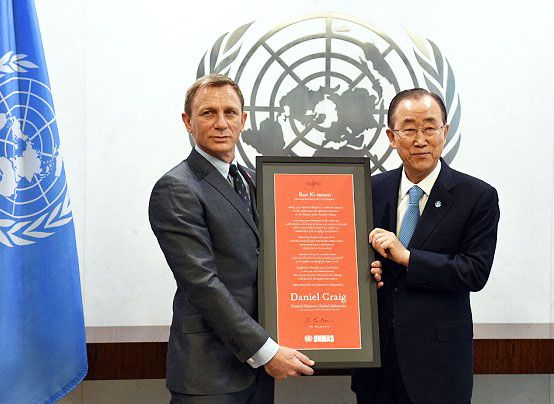 Actor Daniel Craig, famous for his role as James Bond, has been appointed the first global advocate for the elimination of mines and explosive hazards by the United Nations. “You have been given a license to kill, I’m now giving you a licence to save,” UN Secretary-General Ban Ki-moon told him. [BBC]