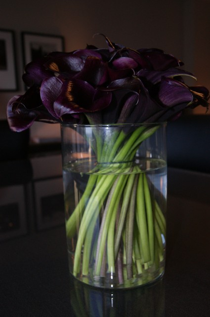 Town and Country Magazine hosted a reception to celebrate the Lake Suite Bottega Veneta at the Park Hyatt Chicago with the Women’s Board of the Art Institute of Chicago last night(9/18). The suite which starts at $4,500/night combines the luxury and attention to detail both brands are known for. From the lamp woven in the intrecciato technique Bottega is known for and the same process as the Bottega Veneta woven bags down to the rug on the floor. Each area of the room was accented with these gorgeous dark purple blackstar calla lillies by Mike Hines Signature.