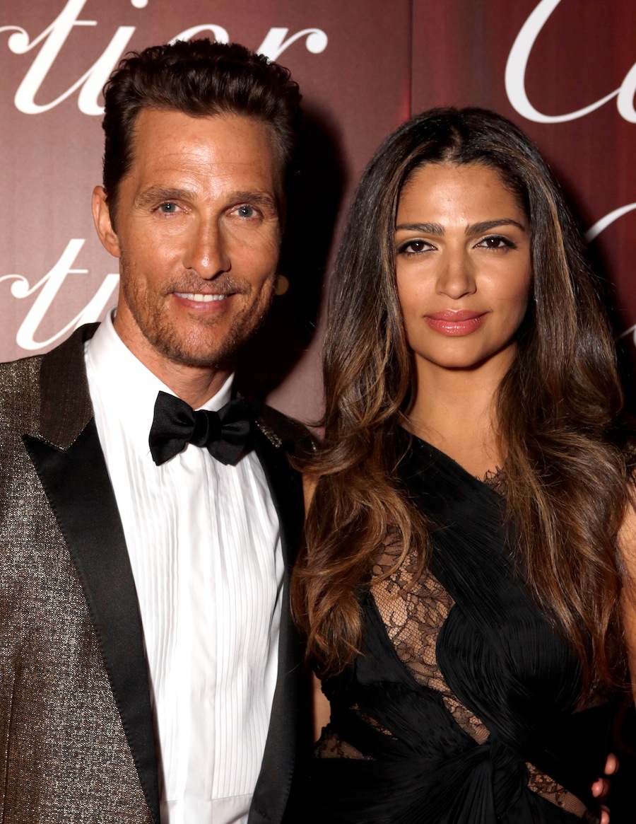 Matthew McConaughey, handsomely dapper in a Saint Laurent metallic gold-colored suit jacket was in attendance with his wife Camilla Alves as he was presented the Desert Palm Achievement Award Actor for Dallas Buyers Clubpresented by his Tiptoes co-star Gary Oldman. He is getting a lot of buzz for his role in the film Dallas Buyers Club.