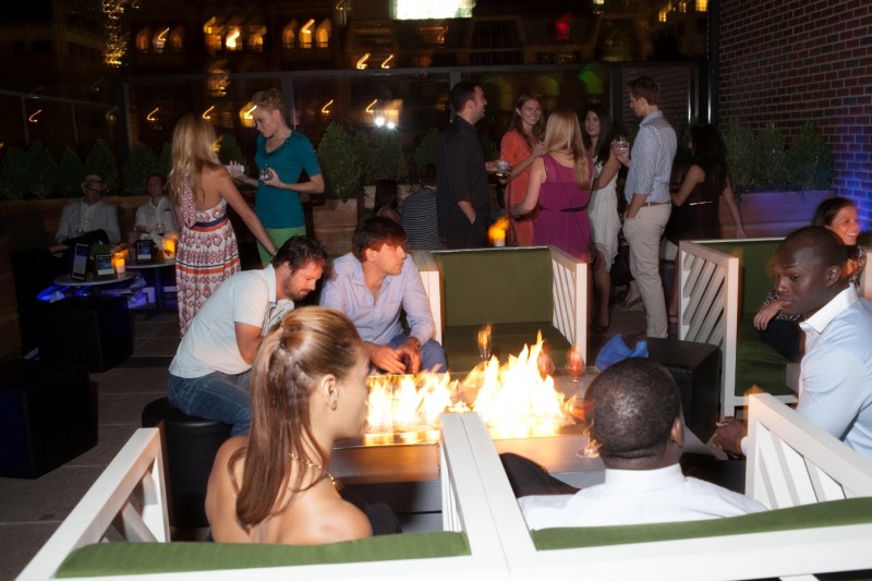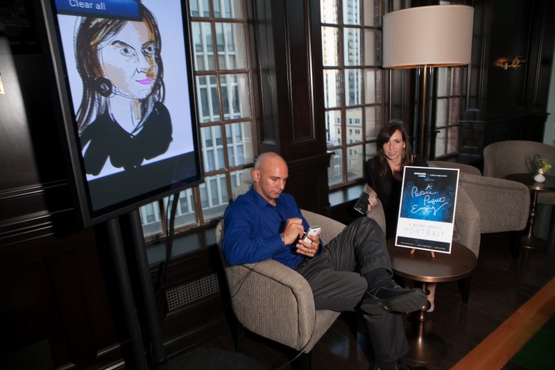 Last Friday (8/17) Urbandaddy hosted a another great chill fab party for Samsung’s new Galaxy Note. We all gathered at Drumbar atop the Hotel Rafello in Streeterville for a picture perfect evening under the stars. Riding up the elevator, THIS, came to mind. As guests got off the elevator, they were greeted with a chilled glass of prosecco or drumbar ‘honey’ cocktail. People were able to take pictures with the galaxy note and tweet them and some guests even got doodled during the event.